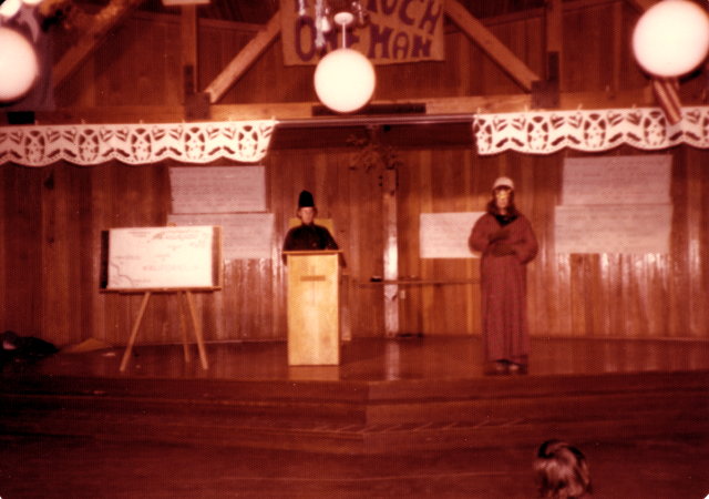 Before I explain the origin and function of her many quaint and colorful costume pieces, Laurie will perform a brief dance of the Holidejkemp area to music of a local village orchestra.