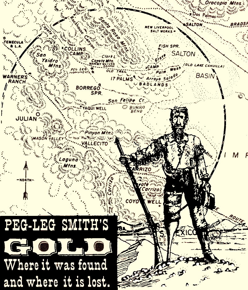 "From this time on the story of Pegleg and his discovery began to spread and to assume fantastic forms. Every one who related it told it differently. However, there were those who knew and appreciated the real facts regarding the find and who never gave up the idea of some day making a journey across the desert in search of the gold they knew must be there.