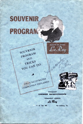 Here are scans of the cover of Le Roy's Souvenir Program he sent me when I was a youngster. In fact, looking though the back of the front cover, you'll see me as that youngster at Le Roy's sister's "HI-DA-WA" near Harrisonburg, Virginia in 1946.